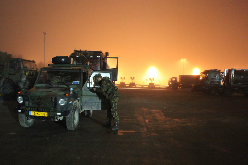 Deze komt uit de oude doos, maar is daarom niet minder mooi. Met een rode gloed als achtergrond legde de fotograaf een Nederlandse militair vast, die zich in de spiegel van zijn MB camoufleert. De kiek werd genomen tijdens manoeuvres van 43 Gemechaniseerde Brigade op het Amerikaanse Joint Multinational Readiness Center in het Duitse Hohenfels. Foto: US Army Europe