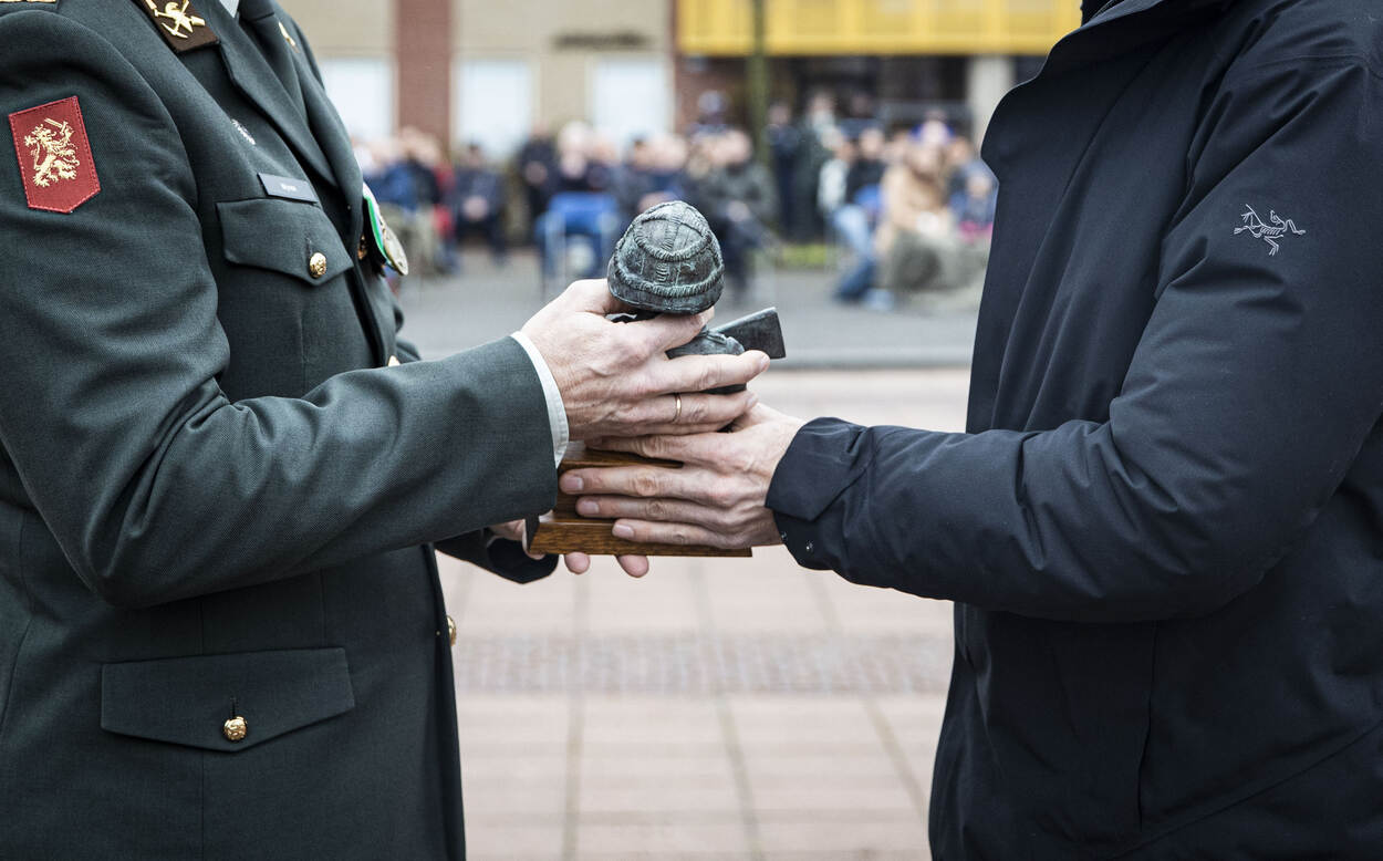 Peter stapte een paar jaar terug over naar een baan bij de politie. Vandaag komt hij terug op de kazerne in Roosendaal om het Ereteken voor Verdienste in zilver en de Sculptuur Operationeel Optreden in ontvangst te nemen. “Het overviel mij een beetje. Zes jaar na dato. Maar het is een mooi gebaar.” Michiel vult aan: “Het voelt ook dubbel. De aanleiding is ontzettend naar, maar de onderscheiding heel eervol.”