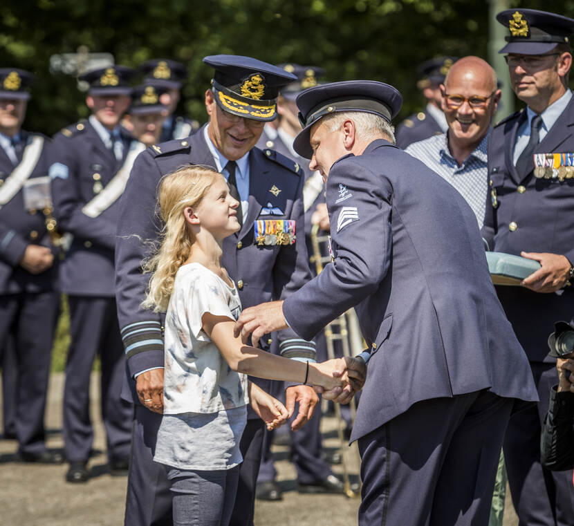 Sergeant-majoor John van der Wijst stuurde een foto waarop zijn dochter de Kindermedaille ontvangt voor haar optreden tijdens de thuisfrontdag van de Air Task Force Middle East 6. In totaal vaardigde de luchtmacht elf detachementen naar Jordanië af.