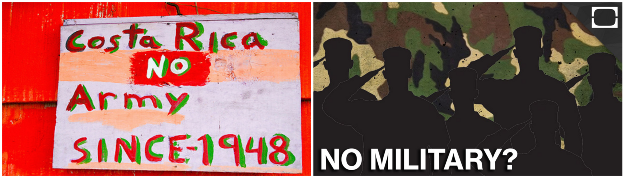 Maar er staat ook wel degelijk een aantal grotere landen op de lijst, met name in Midden-Amerika. Een gedeelte van de wereld dat nu juist zo bekend staat om z’n staatsgrepen en junta’s. Zoals Costa Rica dat al sinds 1949 in de grondwet heeft verankerd dat een leger taboe is. Na alweer een burgeroorlog vormde de nieuwe president José Figueres Ferrer destijds de krijgsmacht om tot politie- en grenswacht.