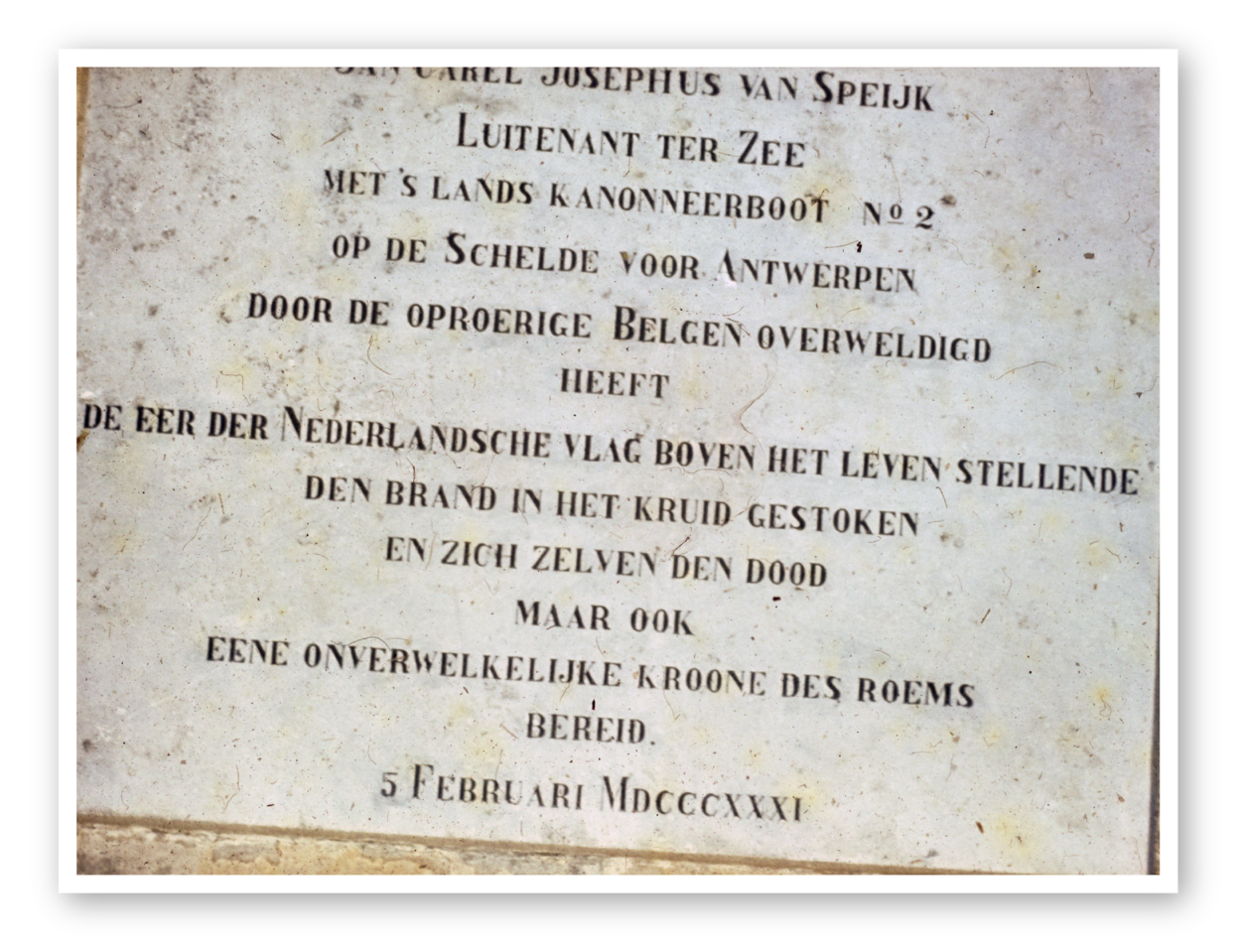 Tijdens de zogenaamde Belgische Opstand verwerft de Nederlandse kanonneerbootcommandant Jan Carel Josephus van Speijk eeuwige vaderlandse roem door zijn schip te laten exploderen om te voorkomen dat het in handen van de Belgische opstandelingen kwam. De Belgische Revolutie, of Belgische Opstand, is de gewapende opstand van 1830 tegen koning Willem I der Nederlanden die tot afscheiding van de zuidelijke provincies leidde en daarmee tot de onafhankelijkheid van België.