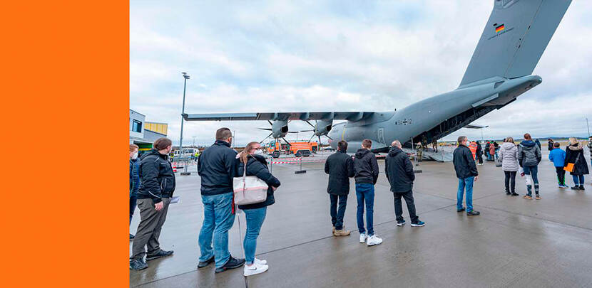 840 geïnteresseerden maakten van de gelegenheid gebruik om op het vliegveld van Kassel hun prik te halen en tegelijk even rond te kijken in de militaire kist van het Lufttransportgeschwader 62 uit Wunstorf bij Hannover. Militaire medisch personeel hield ondertussen, ondersteund door civiele collega’s, de statistieken bij. 142 mensen kregen hun eerste vaccinatie, waaronder 112 kinderen onder de twaalf jaar. 135 personen kwamen voor de tweede prik en er werden 563 boostervaccinaties uitgedeeld.