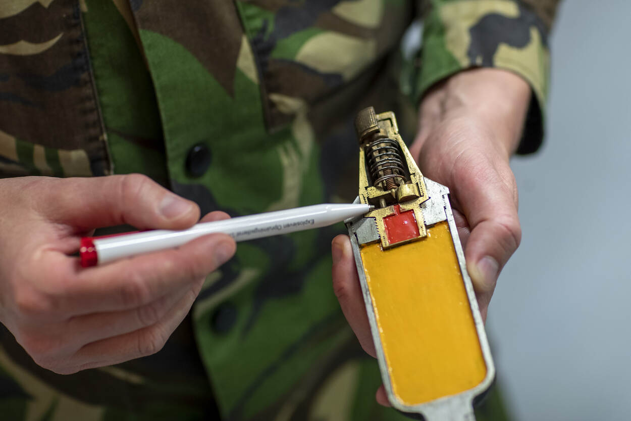 “Afgaande op de uiterlijke kenmerken vermoedden we dat het om een toxische granaat kon gaan. Dat bleek te kloppen. Het was een zogenoemde Grunkreuz, geladen met het zeer giftige fosgeen. Dit strijdmiddel was toen heel berucht. Zwaarder dan lucht stroomde fosgeen makkelijk de loopgraven in, waar het vele doden en gewonden maakte.” Om gespecialiseerd te zijn in het ruimen van gasgranaten volgen EOD’ers een toegepaste opleiding bij de Belgische Dienst voor Opruiming en Vernietiging van Oorlogstuigen. “Onze zuiderburen stuiten veel meer dan wij op dit soort explosieven.”