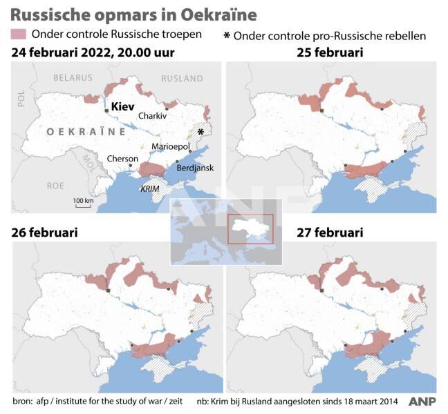 Al snel nadat president Poetin in een speech verklaart een "speciale militaire operatie" te starten in Oekraïne, zijn de eerste explosies te horen in steden als Kramatorsk, Odessa, Charkov en Kiev. Defensieminister Ollongren noemt het kort daarna een: "illegale daad van agressie met ernstige gevolgen."