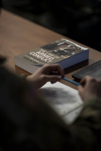 Nadat groepsoudste Skye Williams de klas om stipt 07.40 aanmeldt, kijken de cadetten serieus naar voren. Naar majoor Coban. Hij geeft twee tot vier dagen per week les. De rest van de tijd heeft hij nodig voor voorbereiding en nevenactiviteiten zoals gastcolleges, deelname aan symposia en de organisatie van conferenties.