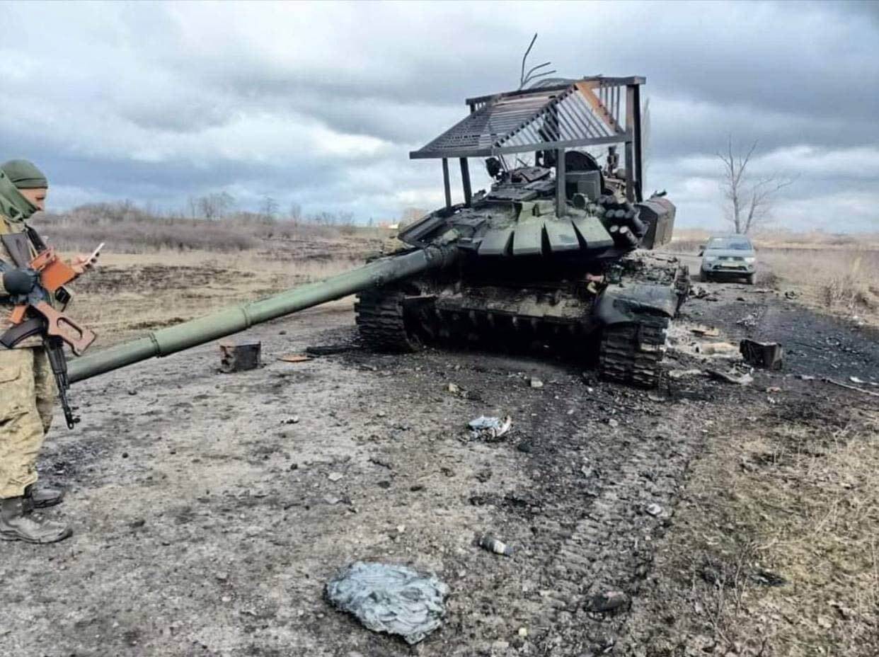 Intussen heeft het leger van Zelensky de beschikking gekregen over een groot aantal wapens uit het Westen. Video’s van juichende Oekraïners met Westerse anti-tankraketten zijn volop te zien op social media net als dat ene filmpje van het neerhalen van een Russische helikopter met een Stinger-achtige luchtdoelraket. Aan de uitmonstering van de Russische wapens kun je zien dat ze proberen te ontkomen aan de nieuwe Westerse wapens met provisorische beschermingsmiddelen, zoals een constructie boven op de koepel van tanks. Het bouwwerk is bedoeld om Javelin anti-tank raketten die hun doel van boven aanvallen waar het pantser minder dik is, minder effectief te maken.
