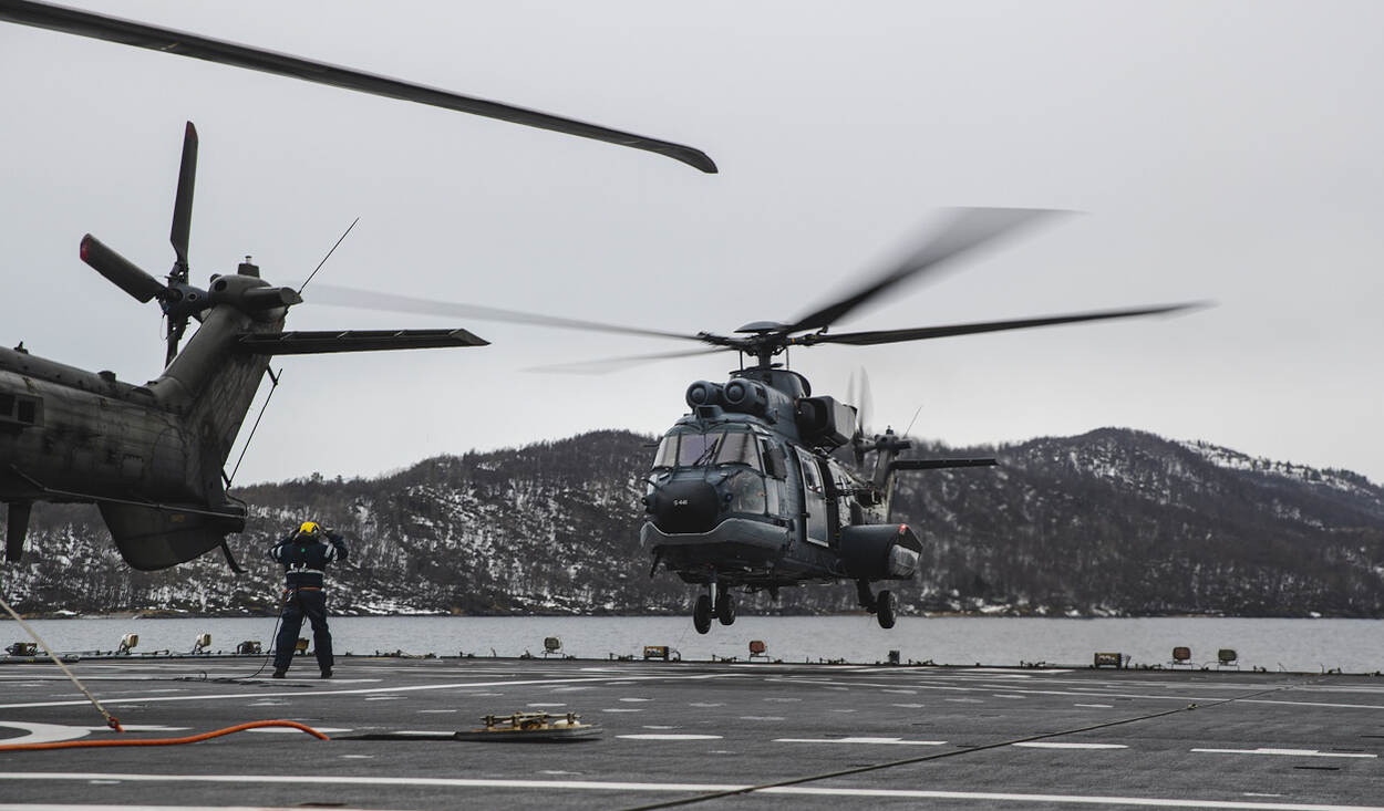 Dertigduizend militairen uit 27 landen doen tot 1 april mee aan de enorm grote NAVO-oefening Cold Response in Noorwegen. Een van de onderdelen deze week was de ‘casualty drill’. De bemanningen van Zr.Ms. Rotterdam, de geëmbarkeerde Cougar-helikopters en Amerikaanse mariniers oefenden met het overvliegen van slachtoffers en gewondenverzorging aan boord.
