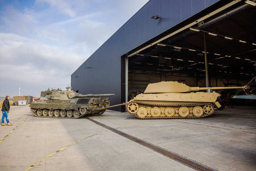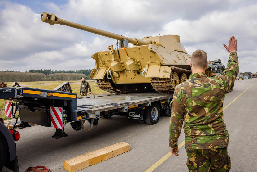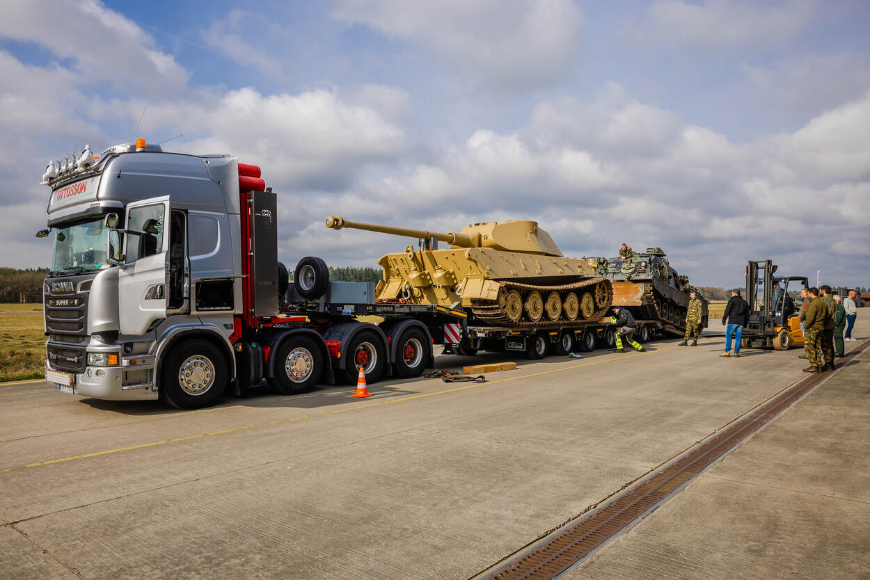 Een bijzondere operatie bij het Nationaal Militair Museum (NMM) in Soesterberg deze week. Daar werd een van de bekendste tanks uit de Tweede Wereldoorlog, een Tiger II, door de bergingstank van 43 Gemechaniseerde Brigade op een vrachtwagen geduwd voor vervoer naar Zweden.