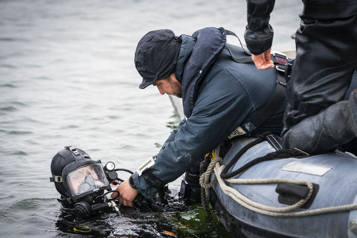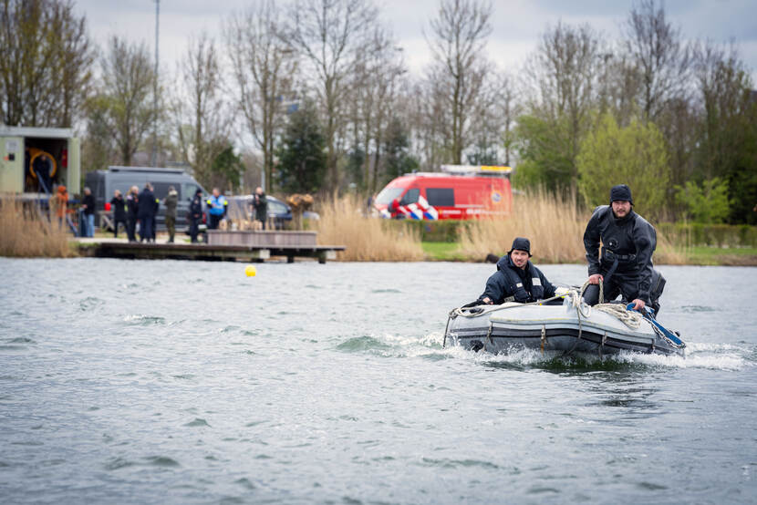 De oefening waaraan ook duikteams van brandweer, politie én Defensie meedoen, wordt in en op de plas van Strandzone Haarrijn gehouden. In dit Utrechtse recreatiegebied zorgen de verzamelde hulpdiensten voor wat opschudding. De overdaad aan dienstvoertuigen en de activiteiten met bootjes op het water doen sterk vermoeden dat het een crime scene is.