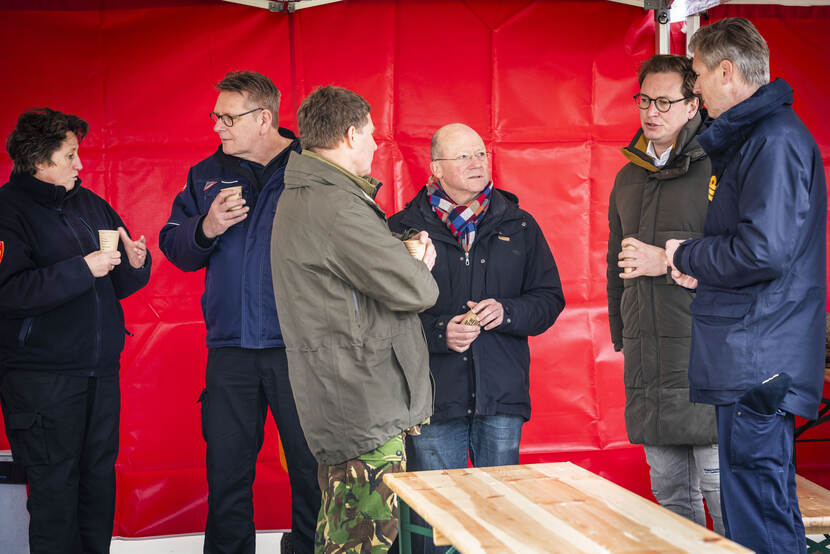 Het is maar een slordig geklede paspop, maar toch lijkt die verdraaid veel op een echt slachtoffer. De achter de rug gebonden handen en getapete enkels, de vormeloze zwarte jas wekken de indruk dat de scenarioschrijvers wat voorkennis in het script stopten. “Bij civiel-militaire samenwerking worden ook wij veel gevraagd om verdronken of vermoorde mensen uit het water te halen”, vertelt Kool. “Om die gezamenlijke dienstverlening steeds verder te verbeteren, is deze oefening een goede voorbereiding op toekomstige nationale operaties.”