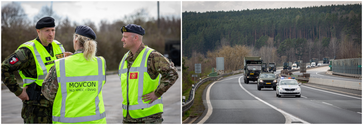 Waar in Nederland en Duitsland nog relatief vrij in pakketten van 9 voertuigen kon worden gereden, staan de Tsjechen en Slowaken erop dat dit in colonnes van 20 voertuigen én onder politiebegeleiding gebeurt. Bij de grensovergang tussen Duitsland en Tsjechië is het daarom alle hens aan dek voor sergeant-majoors Robin en Jeanette van Movement Control (MOVCOM). Razendsnel zetten ze samen met de Tsjechische politie een plek af waar de voertuigen worden opgevangen en samengevoegd. “Het is nogal een stoet waarmee je een land binnenkomt”, legt Robin uit. “Ze willen ons hier graag faciliteren, maar toch ook een beetje controle houden. Dat gaat op deze manier natuurlijk net iets makkelijker.”