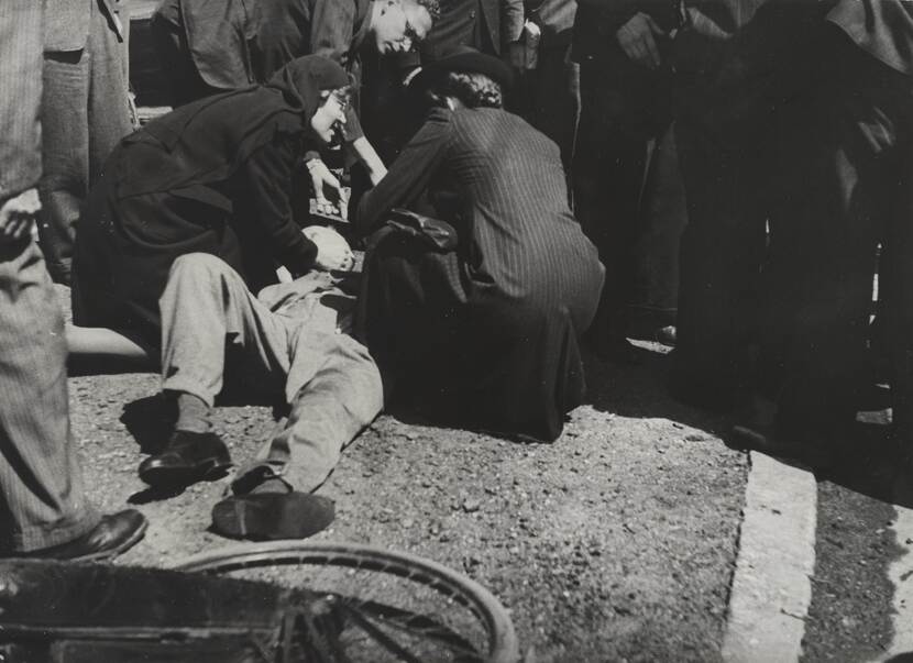 Als gevolg van de geallieerde opmars ontstaat er langzaam maar zeker een steeds groter tekort aan voedsel. De aanvoerlijnen naar de Randstad worden onderbroken door de oorlogshandelingen, een treinstaking en represailles van de Duitsers die het wegverkeer blokkeren. Deze hongersnood wordt steeds erger en heeft ongekende gevolgen: er sterven ruim twintigduizend Nederlanders en honderdduizenden worden ziek door ondervoeding. Soms zakken de mensen op straat gewoon in elkaar, zoals deze fietser in Den Haag.