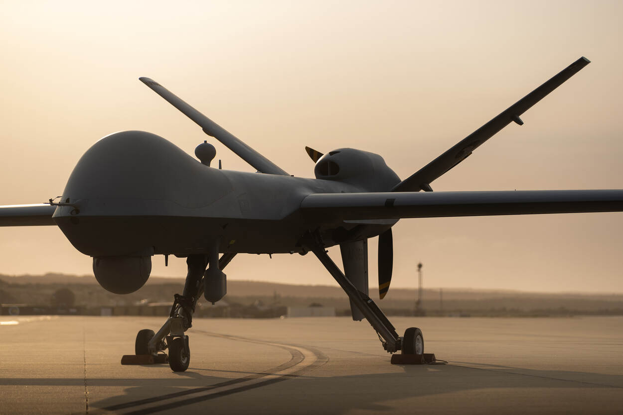 In de vorige Defensiekrant meldden we dat de MQ-9 Reaper zijn eerste vlucht had gemaakt in Nederlandse kleuren. Een heugelijk moment. Nadat het feestgedruis was verstomd, nam fotograaf sergeant Aaron Zwaal de nieuweling nog eens goed onder de loep. Dat deed hij op een moment dat de lucht op Curaçao er prachtig uitzag. Het resultaat mag er zijn: een fraaie opname die een plaatsje verdient in onze rubriek.