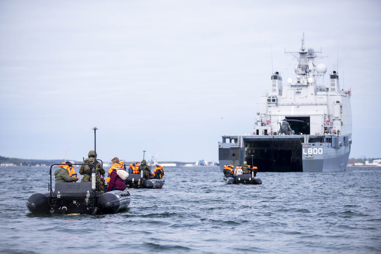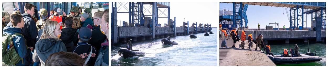 De volgende oefendagen zijn complexer. Rubberen bootjes moeten de evacués naar Zr.Ms. Rotterdam brengen. Dit vereist onderlinge samenwerking van het schip, de mariniers van 21 Raiding Squadron, het Duitse crisisteam, Militärpolizei, Seebattalion, Duitse en Nederlandse helikopters en snelle Rigid Hull Inflatable Boats. Al deze eenheden moeten de mensen snel in veiligheid brengen. En ervoor zorgen dat opstootjes worden gesust binnen de groep gefrustreerde en angstige evacués. Die ontstaan al snel als iemand van voordringen wordt beschuldigd of iets te dicht bij een buurman een sigaret opsteekt.