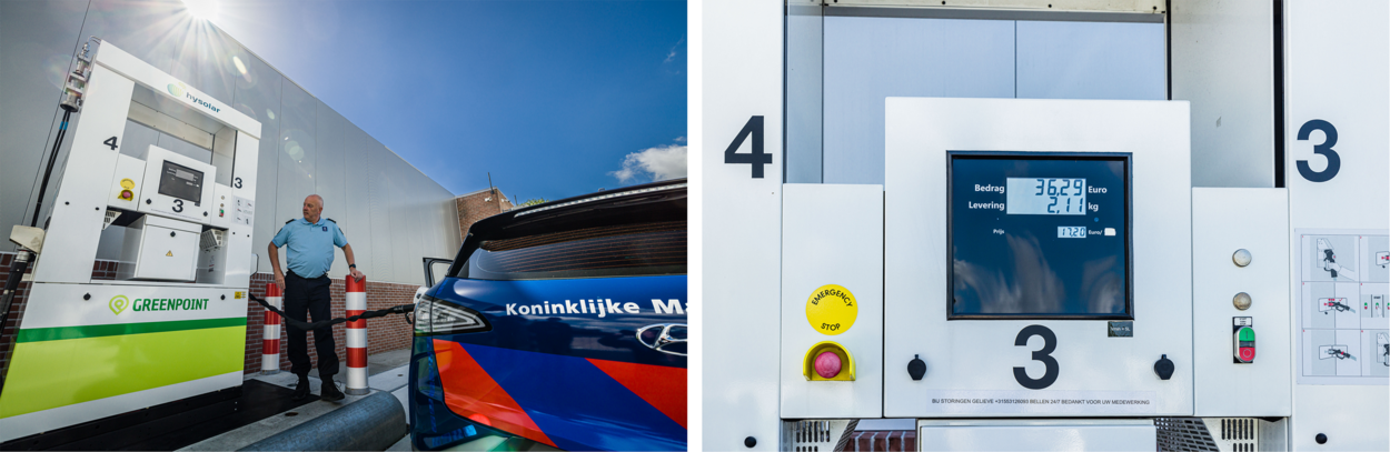Een ander heikel punt is dat de bestuurder het waterstofvoertuig niet op iedere hoek van de straat kan ‘volgooien’. Er zijn op dit moment circa dertien waterstofstations verspreid over ons land. In Duitsland zijn dat er bijna honderd. Het draait bij het tanken overigens niet om liters, maar kilo’s. Afhankelijk van het type auto past er vijf tot zeven kilo in de brandstoftank. Het rijgedrag bepaalt vanzelfsprekend de actieradius: gemiddeld tussen de vijf- en zevenhonderd kilometer. En die lege tank is met een paar minuten weer gevuld.