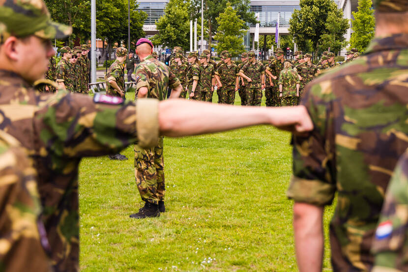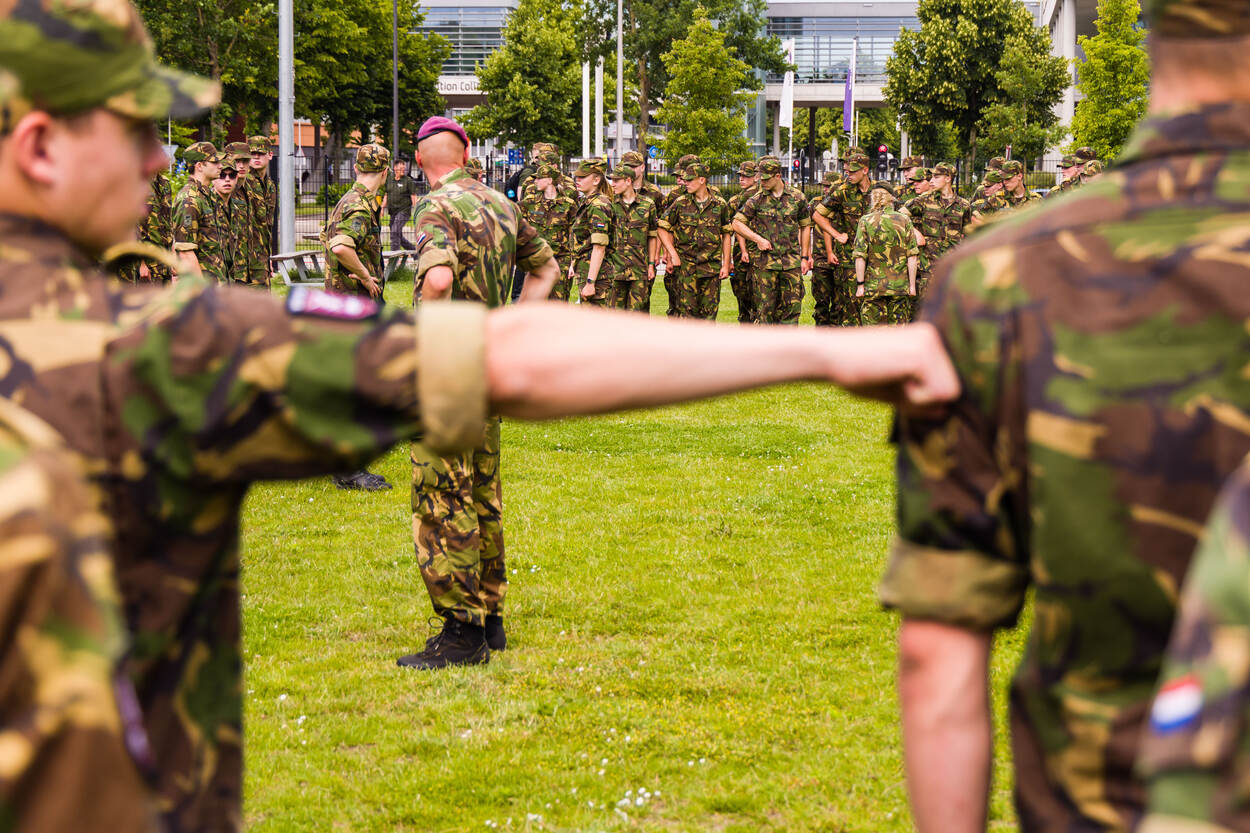 Studenten van de opleidingen Veiligheid en Vakmanschap hielden onlangs op verschillende plaatsen in het land een mars om aandacht te vragen voor het belang van het militaire vak en de Veteranendagen. Uiteraard ging alles volgens de regels en dat betekende dat de studenten naar rechts richten bij het aantreden. Paul Tolenaar legde het strakke ceremonieel vast voor het nageslacht.