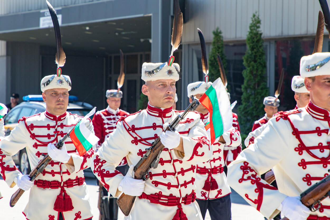 Specialist Dean Johnson van de Amerikaanse landmacht was onlangs in Plovdiv in Bulgarije bij de opening van een internationale defensietentoonstelling. Misschien was deze foto wel zijn meest bijzondere. De opening werd opgeluisterd door in traditionele uniformen gestoken Bulgaarse militairen. En dat is toch écht heel wat anders dan de 'normale' gecamoufleerde tenues waar de Bulgaren hun reguliere militaire werk in doen.