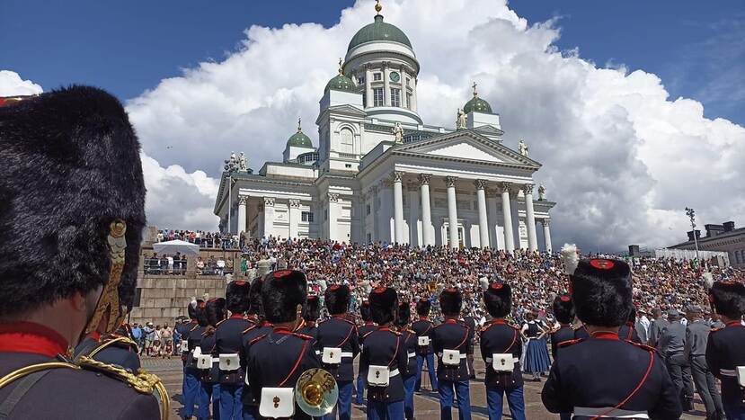 Fagottist Ruud Extra van de Koninklijke Militaire Kapel Johan Willem Friso schoot deze foto tijdens het optreden bij de Helsingin Tuomiokirkko, de Dom van Helsinki in de Finse hoofdstad. Het orkest doet in het land van de duizend meren mee aan Hammina Taptoe. Andere deelnemers zijn onder meer een militaire steelorkest uit Trinidad & Tobago, het Gebirgsmusikkorps der Bundeswehr (Duitsland) en het orkest van het 2nd Battalion Royal Regiment of Scotland.