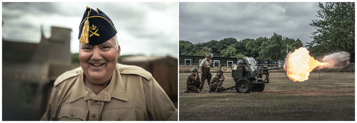 De levende geschiedenisgroep demonstreert iets later op de dag zijn kunsten. Een volledige artilleriebatterij van 25-ponders met bijbehorende trekkers stelt zich op voor een groot publiek en vuurt een aantal salvo’s af, precies zoals Britse artilleristen dat tachtig jaar geleden deden.