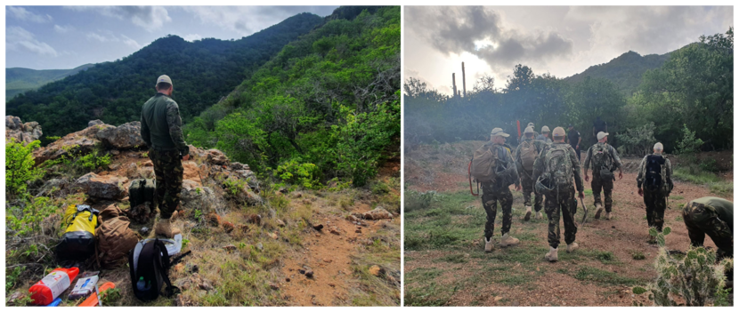 De berging wordt uitgevoerd door de mannen van 102 Constructiecompagnie, naast de verkenners en inlichtingeneenheid, onderdeel van de CidW. “Het bergen van lichamen is niet hun hoofdtaak, maar ze hebben wel het materiaal en de kennis om moeilijk toegankelijke gebieden bereikbaar te maken. In dit geval een moeilijk bereikbare greppel, dichtbegroeid met struiken en cactussen”, verduidelijkt Van der Meer.