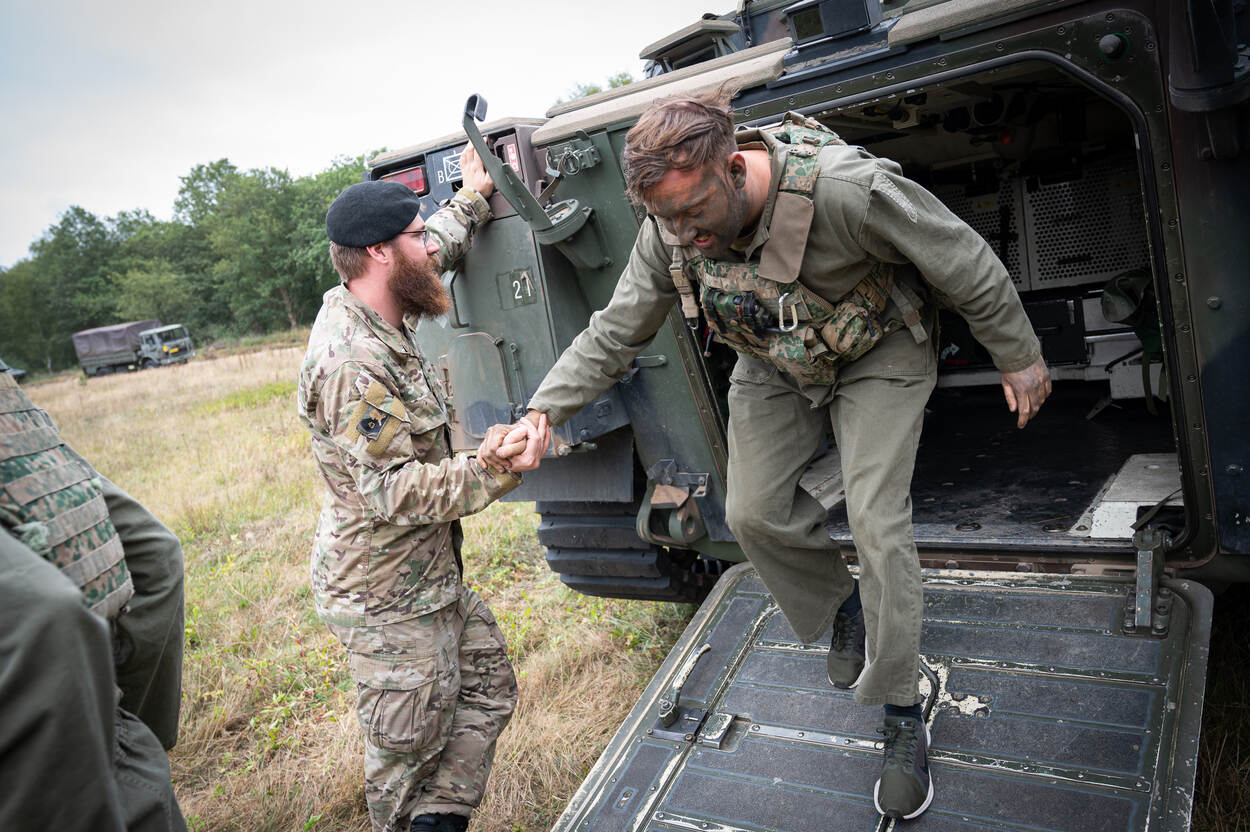 Op het militair oefenterrein in het Drentse Havelte maken de ambtenaren kennis met het zware materieel van de brigade: de 155 mm Pantserhouwitser, het CV90-infanteriegevechtsvoertuig, het Boxer-pantserwielvoertuig en het Fennek-verkenningsvoertuig. Erin en erop, vrijwel alles mag. Na een ritje met de CV90 vraag Avdić zich hardop af: “Hoe slaap je daar dan in?” “Gewoon… zittend”, reageert de infanterist nuchter.