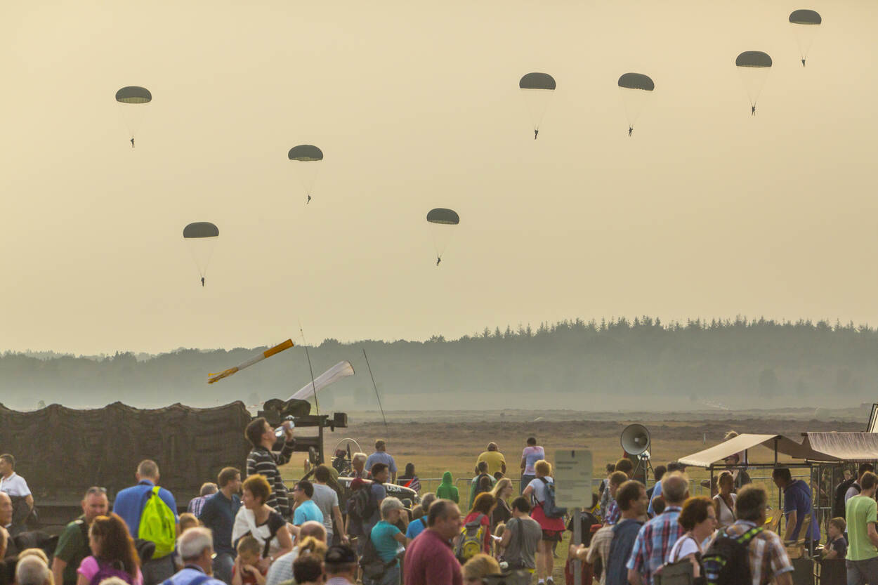 Leden van Parachute Group Holland (PGH) openen morgen om tien uur de herdenkingsdag door in origineel uniform uit een C-47 Dakota te springen. Daarna vervolgt Defensie het programma met onder meer een helikoptershow. De landingsplaats, waar ook bij een afgelasting van de para’s genoeg is te doen, is trouwens uitstekend bereikbaar. Vanaf NS-station Ede-Wageningen rijden gratis pendelbussen naar de heide.
