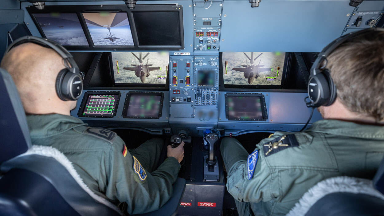 De koning neemt plaats in de cockpit. Niet alleen via de voorruit, maar ook op tal van beeldschermen kan hij de situatie in en rond het vliegtuig in de gaten houden. De rest van de passagiers neemt plaats achterin en aanschouwt het tanktafereel via de raampjes.