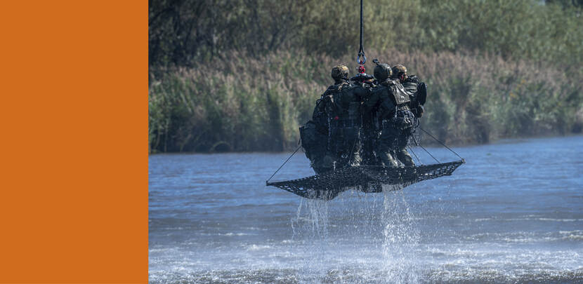 Troepen in vijandelijk gebied oppikken en afzetten blijft voor helibemanningen een riskante onderneming. Gelukkig komt er een systeem aan dat werken onder zulke omstandigheden gemakkelijker en veiliger maakt: de AirTEP. Eind vorige maand werd dit extractiesysteem getest op Vliegbasis Gilze-Rijen en de Vaarschool van het Korps Commandotroepen in Raamsdonk.