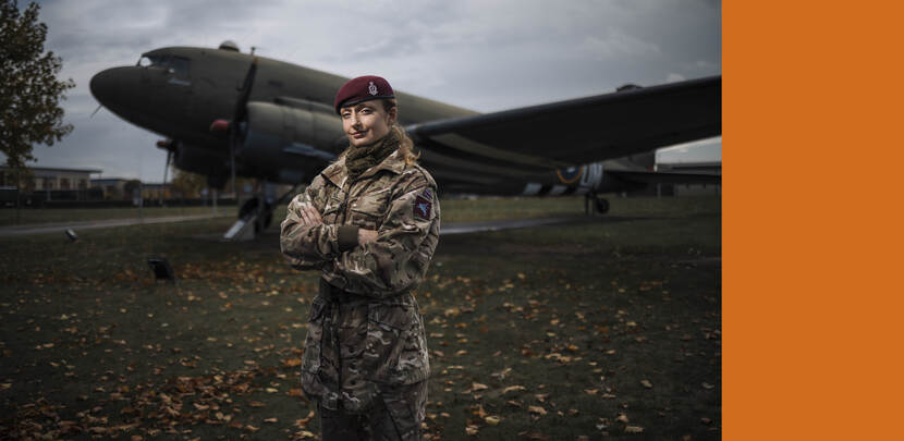 Private Addy Carter van 16 Medical Regiment is de eerste vrouwelijke soldaat die in het Britse leger de rode baret mag dragen.