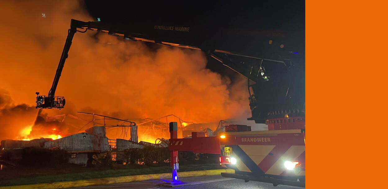 Bij een bloembollenbedrijf was aan het begin van de avond een enorme uitslaande brand ontstaan. De burgerbrandweer schaalde gelijk op naar grote brand. De hoogwerker van de marine is de grootste hoogwerker van de Benelux en beschikt over een uitschuifbare arm van 61 meter. Die kwam uitstekend van pas bij het bestrijden van het vuur.