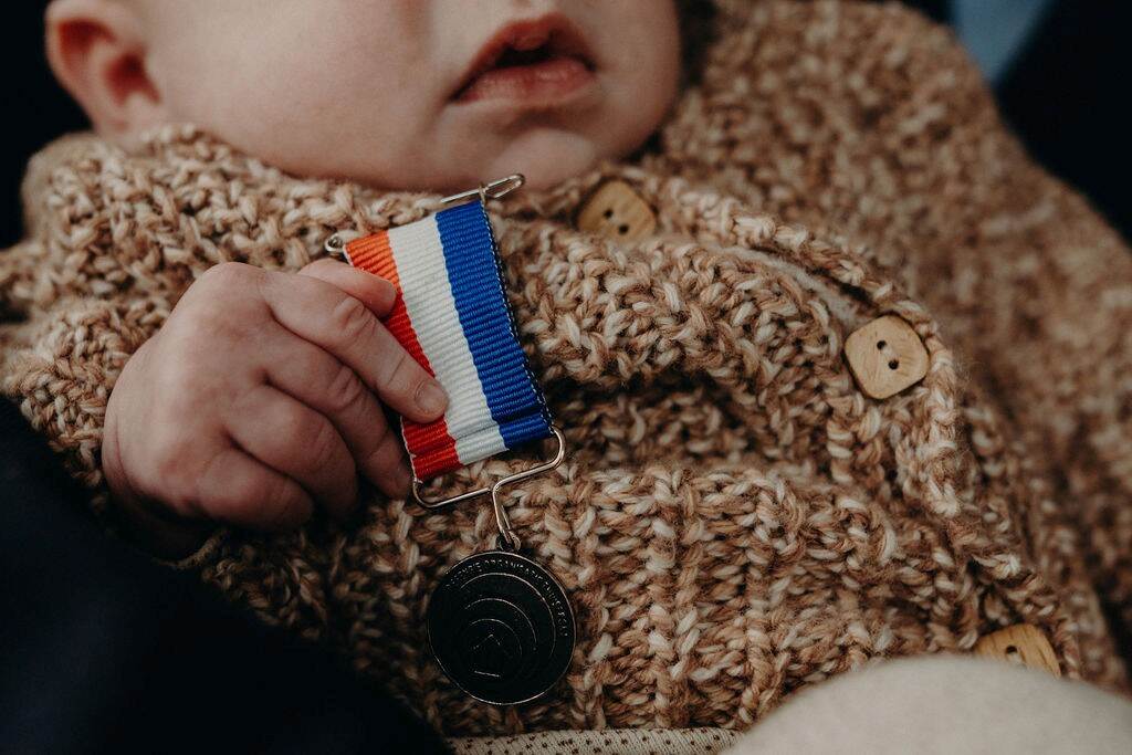 Jong geleerd is oud gedaan. En in dit geval piepjong. Sergeant Richard Broersma kreeg onlangs een medaille voor zijn uitzending naar het Afrikaanse Mali. Traditiegetrouw kregen tijdens de ceremonie ook de kinderen een onderscheiding. In dit geval was het vier weken oude dochtertje van de munitiebeheerder en zijn vrouw Kim de gelukkige. Wat een prachtige foto!
