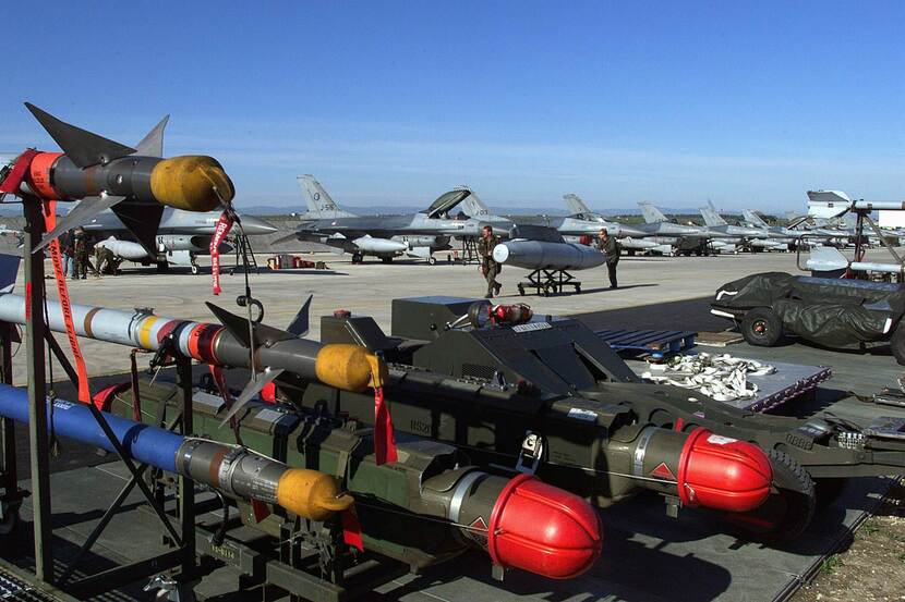 “We wisten op 23 maart, dus één dag voor de missie, al dat we ingedeeld waren in de tweede aanvalsformatie van de NAVO-operatie. Zo’n formatie, in vaktaal een package, bestaat uit verschillende soorten vliegtuigen. Afgezien van de toestellen die bommen moeten afwerpen, gaat het om luchtverdedigingsjagers, vliegtuigen die de vijandelijke luchtafweer moeten storen of uitschakelen en, op wat grotere afstand, de vliegtuigen voor de ondersteuning zoals vliegende radarstations, commandotoestellen en tankvliegtuigen.