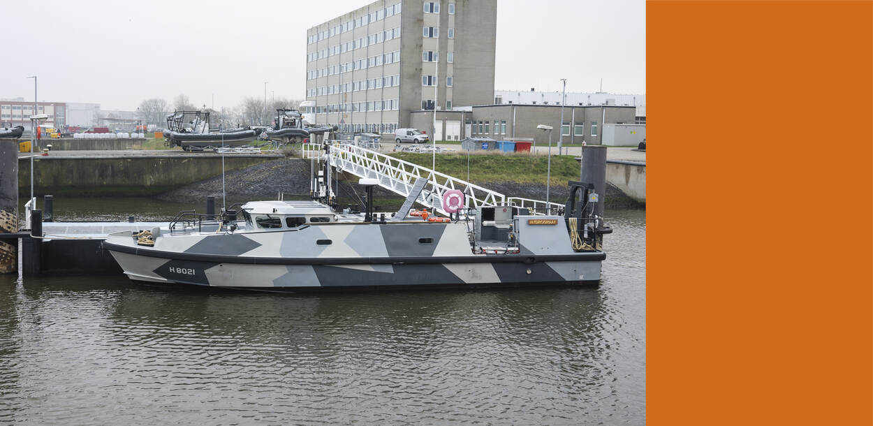 De opvallende Expeditionary Survey Boat (ESB) van de Koninklijke Marine is operationeel. Het geavanceerde 'mini'-hydrografische opnamevaartuig is deze week overgedragen.
