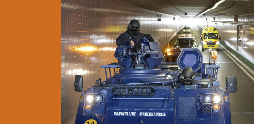 De marechaussee heeft woensdag met YPR-pantserrupsvoertuigen op de openbare weg geoefend. Doel van de bijzondere rit was de rijvaardigheid van de bestuurders op peil te houden.