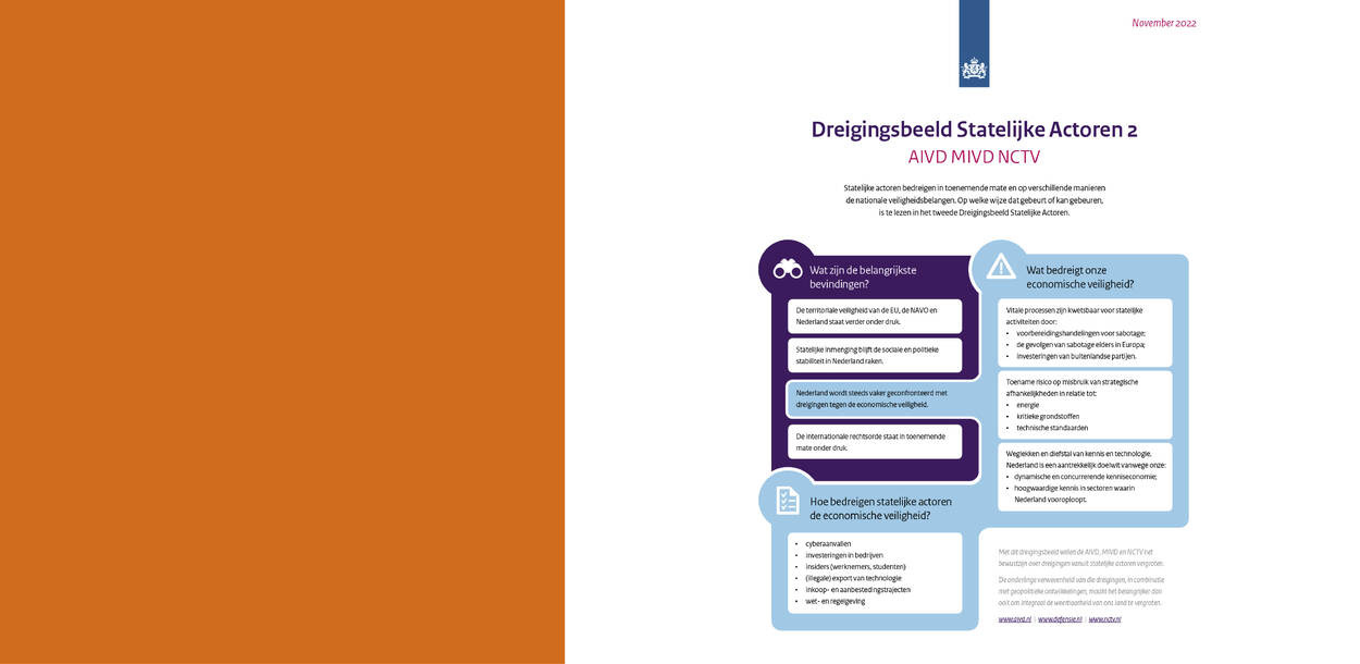 Dit komt onder meer door ingrijpende internationale ontwikkelingen die voor instabiliteit zorgen, waarvan de oorlog in Oekraïne het meest actuele voorbeeld is. Dit concluderen de hoofden van de AIVD, de MIVD en de Nationaal Coördinator Terrorismebestrijding en Veiligheid (NCTV). “Dat Nederland een belangrijk doelwit is, blijkt onder meer uit een onderzoek van de MIVD dat cyberspionnen van de Russische militaire inlichtingendienst GRU afgelopen jaar Nederlandse routers hebben gehackt van particulieren en van het midden- en kleinbedrijf”, verduidelijkt generaal-majoor Jan Swillens, directeur MIVD. “GRU kan deze routers misbruiken om cyberaanvallen tegen Nederland of bondgenoten uit te voeren.”