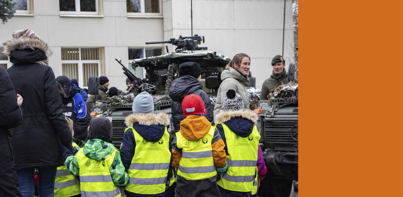 Nederlandse militairen in Litouwen bezorgden kinderen uit het ziekenhuis in Vilnius onlangs een fijne dag. De kleintjes mochten onder meer in een Role-1-tent (geneeskundige behandelfaciliteit) op de parkeerplaats hun knuffels 'behandelen'. Daarnaast was er een tentoonstelling van militaire voertuigen.
