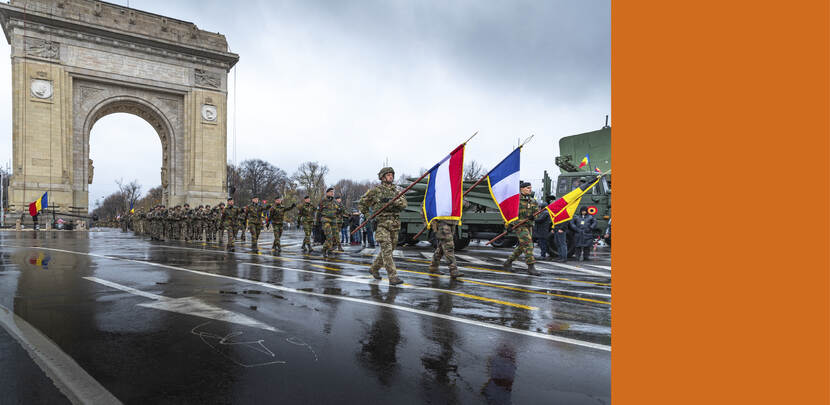Militairen van de Delta 'Djokja'-compagnie van 13 Infanteriebataljon Regiment Stoottroepen Prins Bernhard hebben 1 december samen met collega's van de NAVO-battlegroup meegedaan aan een militaire parade in de Roemeense hoofdstad Boekarest ter gelegenheid van een nationale feestdag.