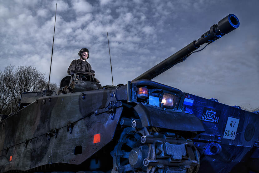 Dat is dan helder. Maar een pantserwagen, zoals 'onze' CV90 (CV staat voor Combat Vehicle), heeft toch ook een kanon en rijdt op rupsbanden? "Die er vooral is om zichzelf of de uitgestegen infanterie te verdedigen, vaak tegenover doelen die binnen zicht zijn", betoogde oud-landmachtgeneraal Mart de Kruif deze week. Ze moeten snel door het terrein kunnen bewegen en zijn dus een stuk lichter dan een tank. De Nederlandse CV90 - na de update zwaarder - weegt onbeladen 31.750 kilo, terwijl een tank zoals de Duitse Leopard meer dan zestig ton zwaar is.