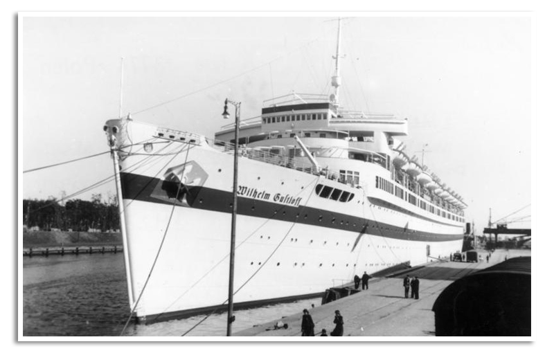 De Gustloff kan ruim tienduizend vluchtelingen herbergen, onder wie zo'n vijftienhonderd gewonde militairen. Op 30 januari vertrekt het schip vanuit Gotenhafen (tegenwoordig Gdynia) aan de Oostzee voor de oversteek naar Kiel.
