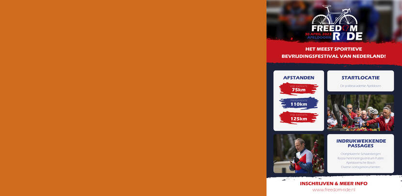 Vanuit Apeldoorn start op 30 april de Freedom Ride. Fiets met collega’s, veteranen, politiemensen en topsporters langs plekken die te maken hebben met het thema vrijheid.