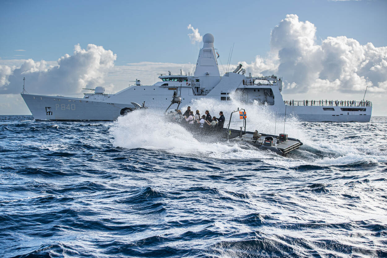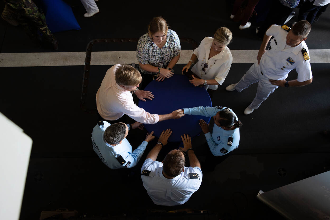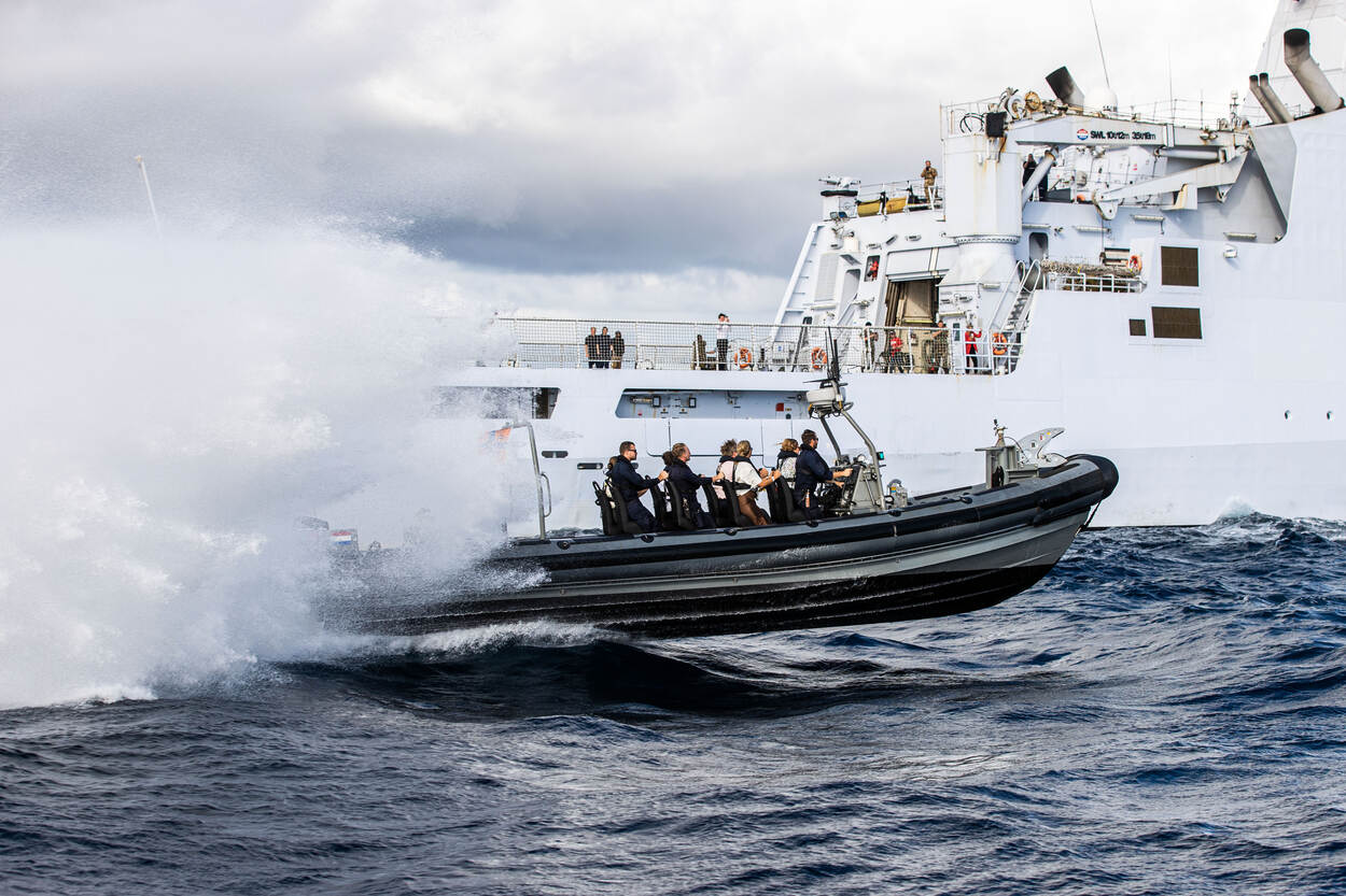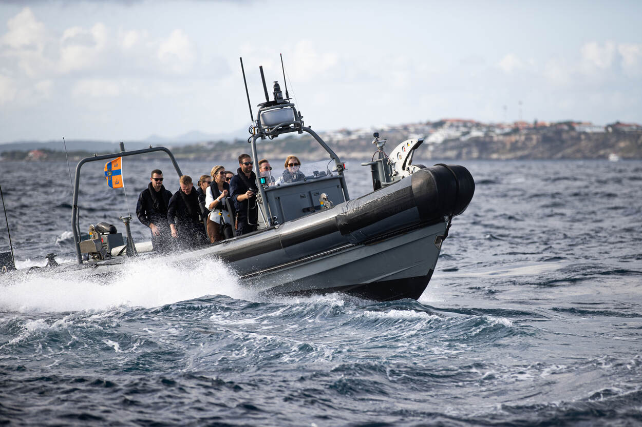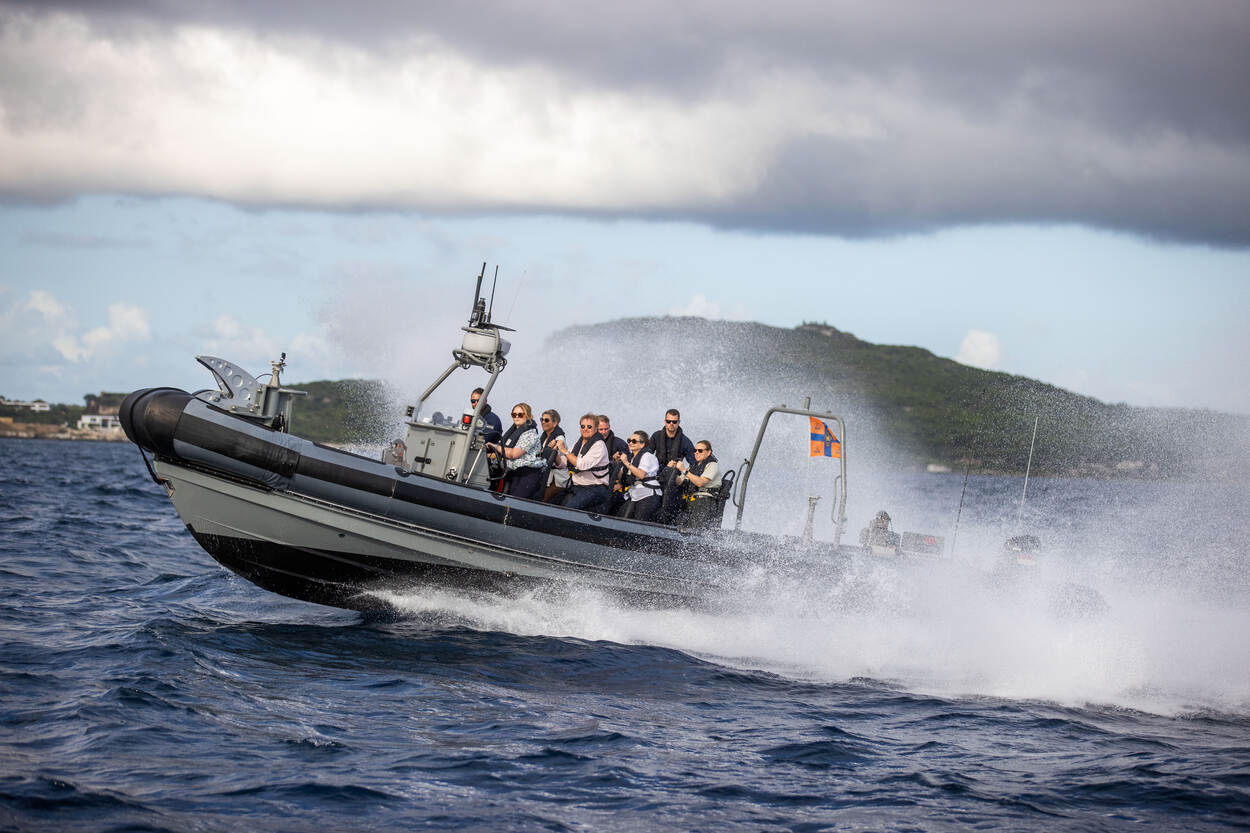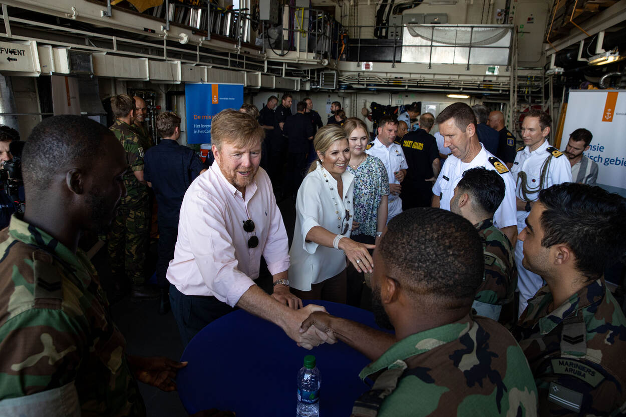 Samen met koning Willem-Alexander en koningin Máxima stapte de Prinses van Oranje op Aruba aan boord van marineschip Zr.Ms. Holland. Tijdens de overtocht naar Curaçao ontmoette de koninklijke familie verschillende delegaties van eenheden in het Caribisch gebied én voeren ze mee met een snelle onderscheppingsboot.