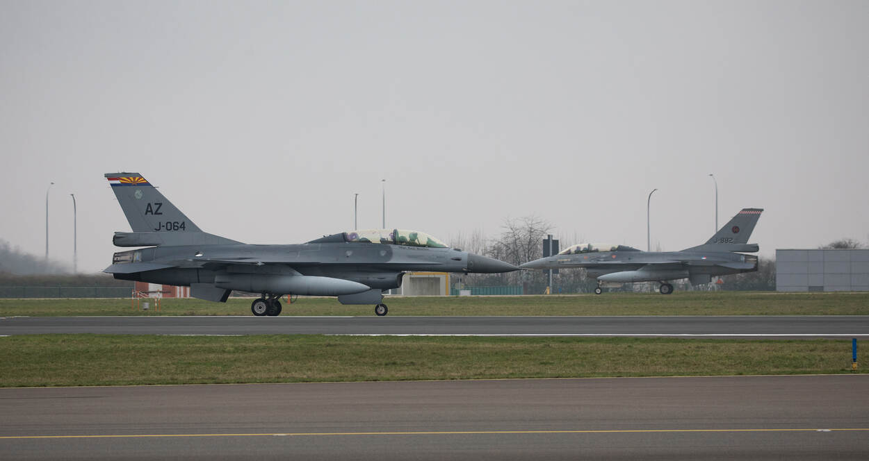 Vaste inzender Manolito Jaarsma stuurde ons bijgaande foto. In het zo kenmerkende 'eigenzinnige' spottersjargon heet dat dan 'op de foto één van de NDTA / 148 FS / 162 FW F-16BM’s met op de achtergrond de enige F-16BM die naar Amerika verscheept was en nog voorzien is van het embleem van 312 squadron'. Wij houden het gewoon op: neus aan neus bij de aankomst van een tweede groep F-16's uit Tucson op Charleroi.