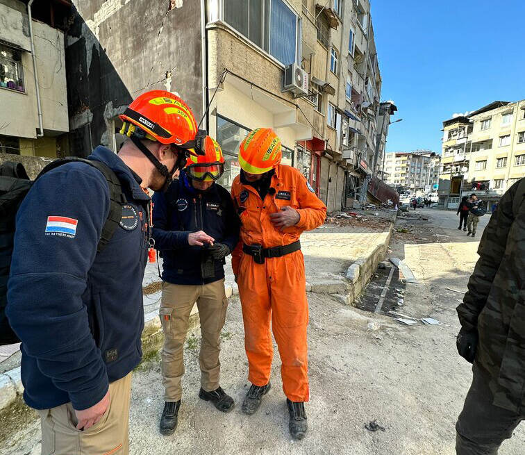 Maandagavond landden Gäbler en z’n USAR-collega’s in het Turkse Adana. “Binnen zestien uur zijn we gealarmeerd en met het hele team uit Nederland vertrokken.” Eenmaal in het gebied werd het UCC razendsnel opgericht. “Met een brandweercommandant, Turkse militair politieagent en drie locals heb ik het gebied in kaart gebracht en een sectorindeling gemaakt. Zo ontstond vrij snel een prioriteitenlijst en al de teams kregen wijken toegewezen.”