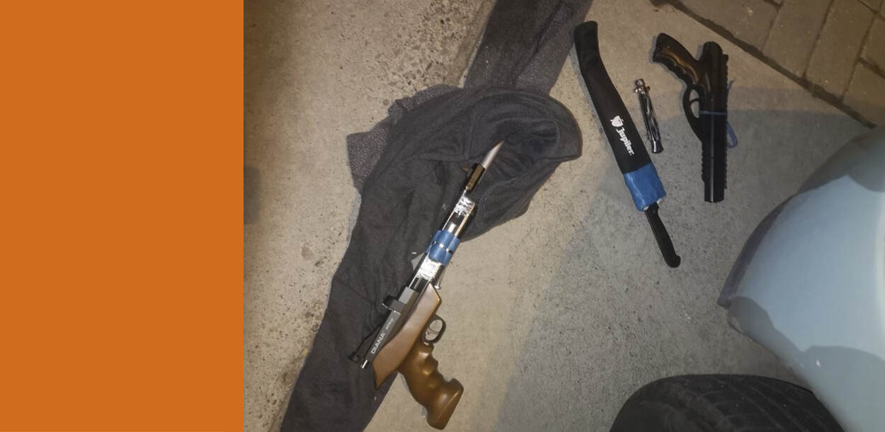 Marechaussees controleerden de man die in zijn auto in de buurt van Schiphol reed en troffen een op een vuurwapen gelijkend voorwerp en een keukenmes aan in zijn broekband. Na zijn aanhouding werd ook in de auto van de verdachte nog een op een vuurwapen gelijkend voorwerp en een stiletto aangetroffen.