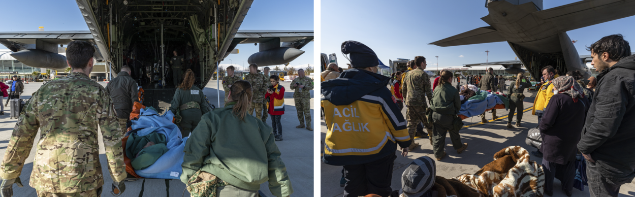 Snel na aankomst in Turkije voert de C-130 binnen 24 uur al medische evacuaties uit vanuit Adiyaman en Adana naar Ankara en Izmir. Overigens doen ook een Britse en een Noorse C-130 mee.