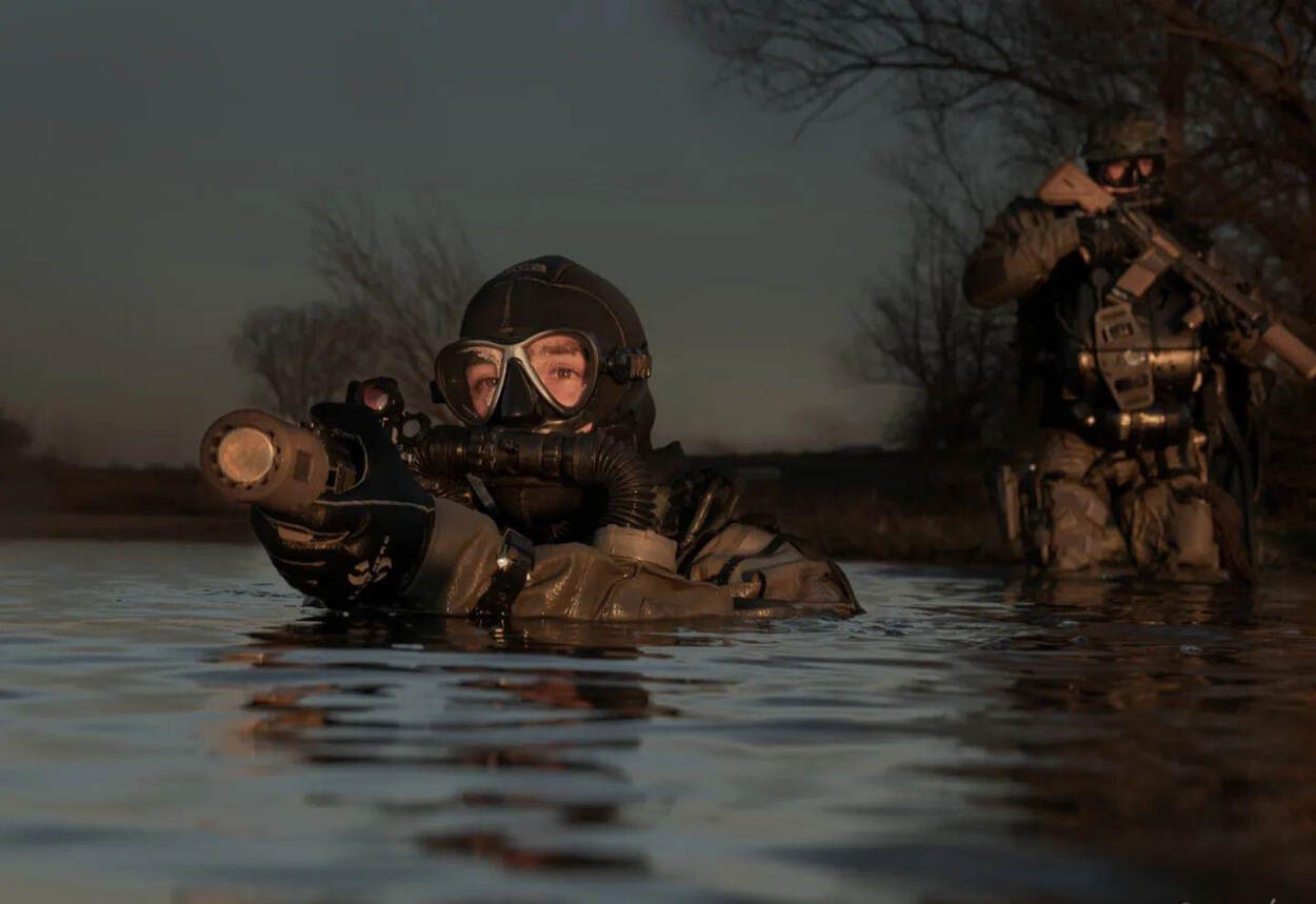 Te land, ter zee en in de lucht. Dat is een beetje het klassieke beeld dat bestaat over de krijgsmacht. Maar het is niet altijd zo zwart-wit. De grens van land en water vormt ook een terrein voor militaire operaties. Denk aan de mariniers, maar ook deze Rode Baretten van de landmacht halen soms natte voeten om hun doelen te bereiken. Precies zoals fotograaf Stan de Haas treffend heeft vastgelegd.