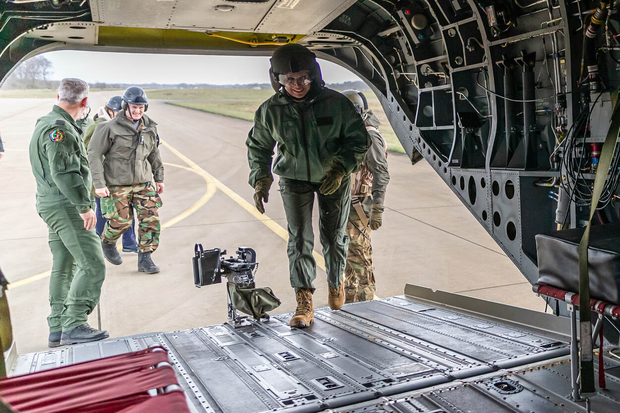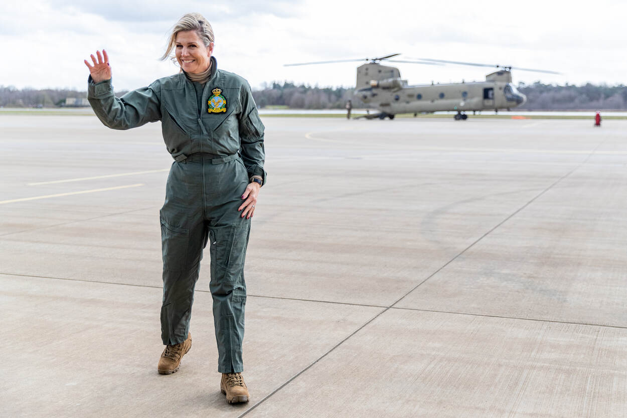 Samen met collega’s van 298 Squadron en het Mobile Air Operations Team (MAOT) oefende Michiel donderdag het zogenaamd blussen van een brand. Tijdens de ‘koninklijke trainingsvlucht’ werd een bluszak gevuld met 7.000 liter water en over de Oirschotse Heide uitgestort. Voor de toegestroomde pers herhaalden de militairen het 'trucje' boven de startbaan van vliegbasis Gilze-Rijen.