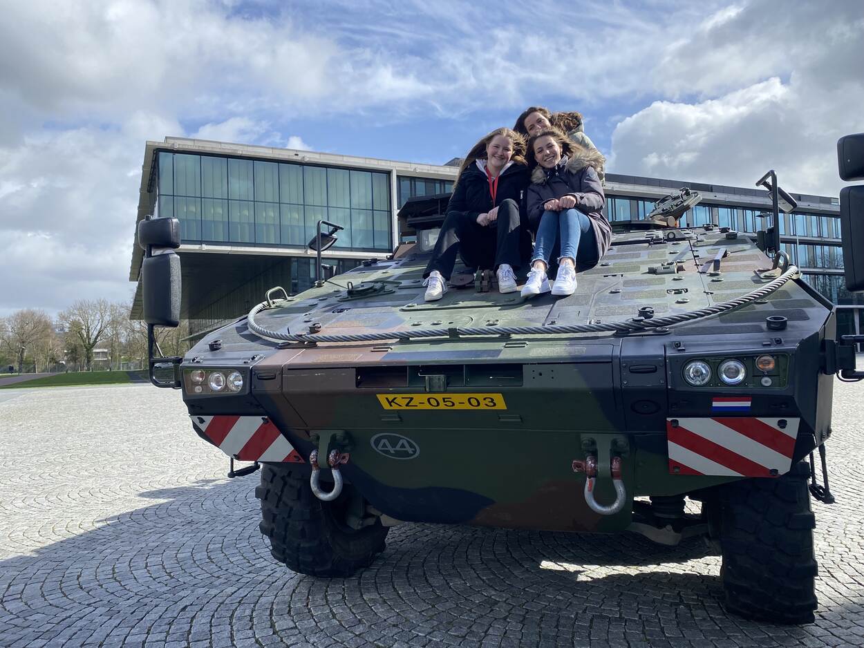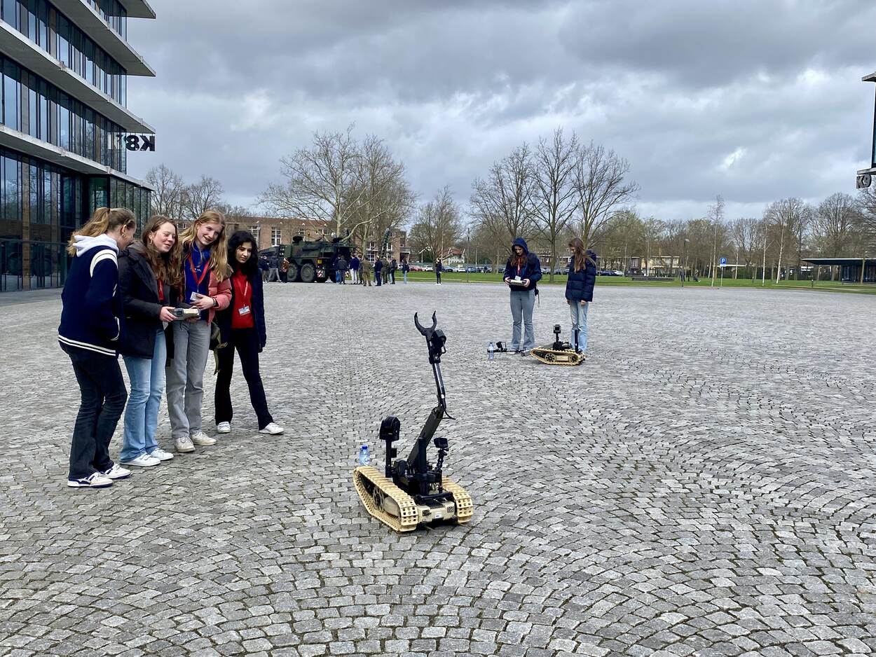 “We willen bereiken dat de meiden meer kanten van het vakgebied zien. Vooral ook binnen Defensie”, aldus Ilse Kroesen, voorzitter Wapensysteem Militair bij DMO. Daarom konden de leerlingen onder meer meedenken over hoe de militair van 2050 eruit ziet, uniformen uitproberen, kregen ze uitleg over het pantserwielvoertuig Boxer en bestuurden ze een militaire robot.