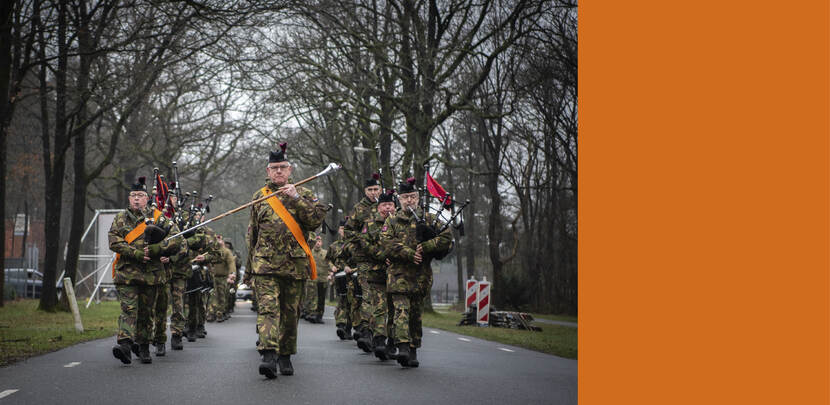 Een bijzonder moment op de Oranjekazerne in Schaarsbergen deze week. Daar werd onlangs de intocht van nieuw opgeleide rode baretten voor de 75ste keer muzikaal opgeluisterd door de Dutch Military Pipes & Drums 'Falcon Guards'.