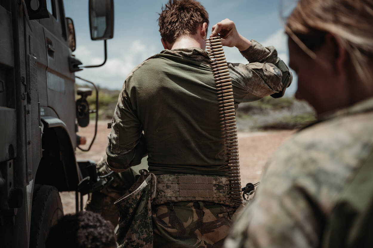 Een deel van 43 Gemechaniseerde Brigade deed vorige maand een Live Firing Exercise (LFX) op tropisch Curaçao. Dit is een oefening waarbij wordt geschoten met scherpe munitie, in tegenstelling tot losse flodders of dummy's.